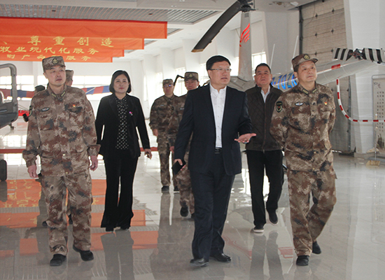 4月15日下午,為深入貫徹習近平主席“平戰(zhàn)結(jié)合”強軍思想發(fā)展戰(zhàn)略,內(nèi)蒙古軍區(qū)動員局局長白曙光、參謀付劍鋒,政治工作局干事李艷雷,在通遼軍分區(qū)司令員閆德峰、政委饒崇書、動員處處長劉波一行陪同下到內(nèi)蒙古神鷹航空集團就推動國防動員和國防后備力量建設高質(zhì)量發(fā)展進行現(xiàn)場檢查指導工作,內(nèi)蒙古神鷹航空集團董事長邱志剛、總經(jīng)理司治莊、常務副總經(jīng)理孫學慧等領(lǐng)導陪同參觀。