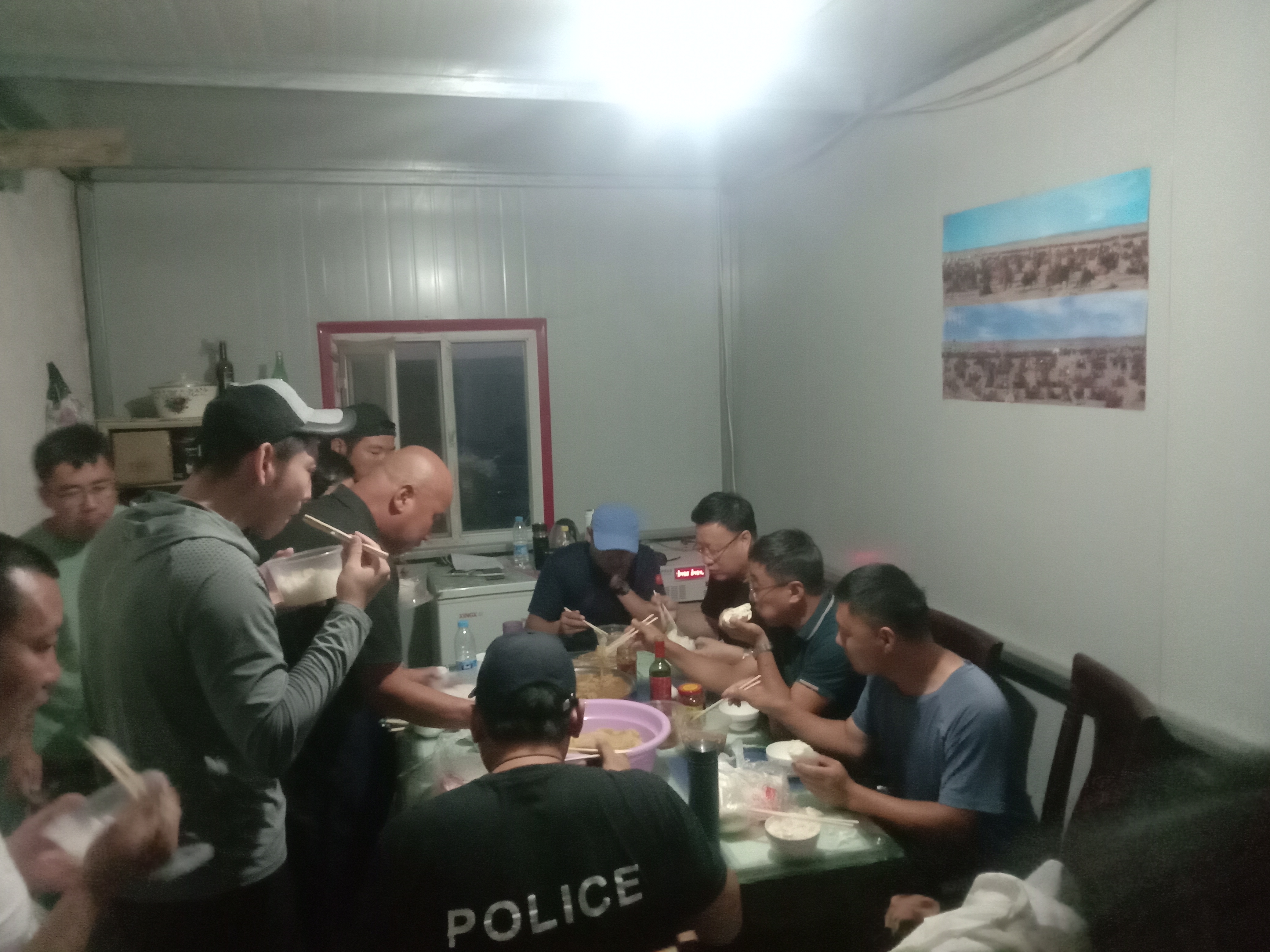 邱志剛董事長還與外場作業(yè)組全體員工一起在作業(yè)現(xiàn)場共用晚餐,并詢問大家工作和生活情況。當(dāng)?shù)弥痪€員工在30多度高溫,蚊蟲困擾的環(huán)境下,每天堅持工作長達(dá)12個小時,吃飯是員工自己在野外做,晚上住在牧民臨時搭建的牧鋪中時,邱志剛董事長再一次被大家這種能吃苦,肯奉獻(xiàn)的敬業(yè)精神所感動。要求管理干部要切實做好防暑降溫措施和后勤保障工作,從關(guān)心、愛護(hù)員工的角度出發(fā),盡可能的改善大家的生活和工作條件,雖在異地他鄉(xiāng)也要讓大家感受到大家庭的溫暖。