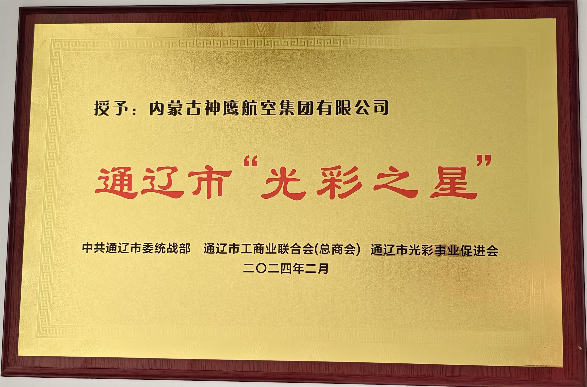 內(nèi)蒙古神鷹航空集團(tuán)榮獲“通遼市光彩之星”